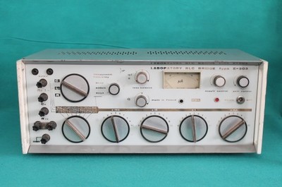 Laboratoryjny mostek RLC sluzy do dokladnych pomiarów opornosci, indukcyjnosci i pojemnosci. Zostal wyprodukowany przez zaklady Eureka w Warszawie, jest to wersja eksportowa. Mostek jest przyrzadem lampowym. Pomiary opornosci dokonywane sa pradem stalym, pomiary pojemnosci i indukcyjnosci przeprowadzane sa pradem zmiennym o czestotliwosci 80, 800 lub 8000Hz. Instrukcja ekspoloatacji zawiera: instrukcje obslugi, opis konstrukcji, opis konserwacji i regulacji mostka, schematy i spis elementów. Wymiary: 49x20x24cm, masa 16kg. Fotografie przedstawiaja plyte czolowa i zblizenie przelacznika zakresów (mnozniki).